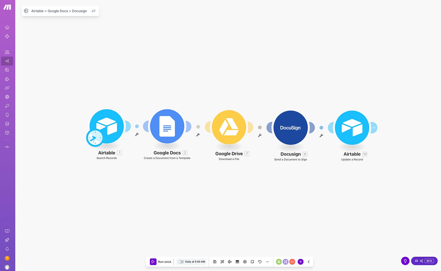That’s what pushed me to start automating my contract process using Make.com, Airtable, and DocuSign.